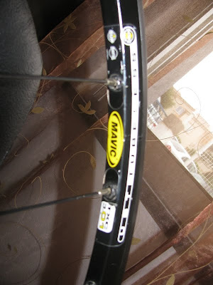 Este objecto vinha do ano de 2001, uma roda traseira já tubeless (para quem não sabe o UST-Universal System Tubeless, desenvolvido pela Mavic e Hutchinson, patente de 2001 US6257676/EP0893280, começou a aparecer por cá em 2000, lançada em 1999), na qual ainda fiz alguns milhares de km antes de adquirir umas Mavic Crossroc (que também me deram problemas no cubo de trás, penso que esta foi oferecida para um qualquer projecto de caridade e voltei estupidamente a comprar outras rodas Mavic em 2006, as quais ainda estão em andamento na posse do senhor André C.) devido ao problema que surgiu neste cubo de trás (linguetes partidos e cepo desgastado). A minha vida devia ser muito triste nessa altura...